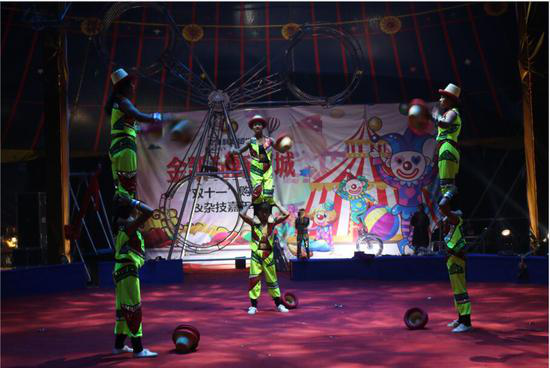 雜技團(tuán)的演員還包括可愛的小動物,訓(xùn)練有素的小狗、小羊和小猴子在訓(xùn)導(dǎo)員的指引下,做出各種規(guī)定動作,小模樣萌翻了現(xiàn)場的觀眾。