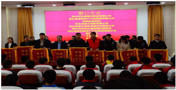 2019年11月23日上午,“大手拉小手 青春助脫貧”公益助學(xué)活動(dòng)在邢臺(tái)臨城中學(xué)報(bào)告廳圓滿舉行。臨城縣委副書記、共青團(tuán)邢臺(tái)市委書記、臨城縣政府副縣長(zhǎng)、共青團(tuán)邢臺(tái)市委副書記、臨城縣教育局局長(zhǎng)、臨城中學(xué)校長(zhǎng)等領(lǐng)導(dǎo)參與了此次助學(xué)活動(dòng),愛心企業(yè)為50名貧困學(xué)子分別發(fā)放3000元每人的助學(xué)金。