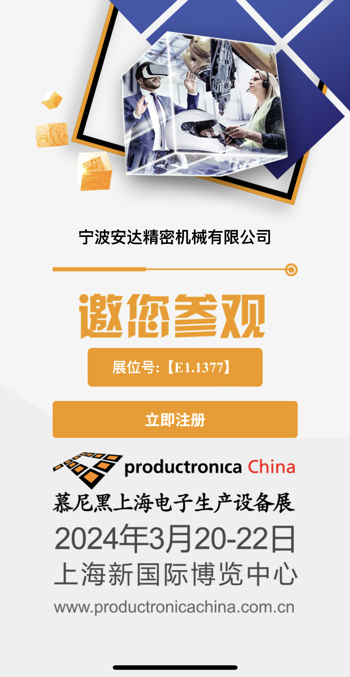 【概要描述】安達(dá)將于2024年3月20日至3月22日參加慕尼黑上海電子生產(chǎn)設(shè)備展